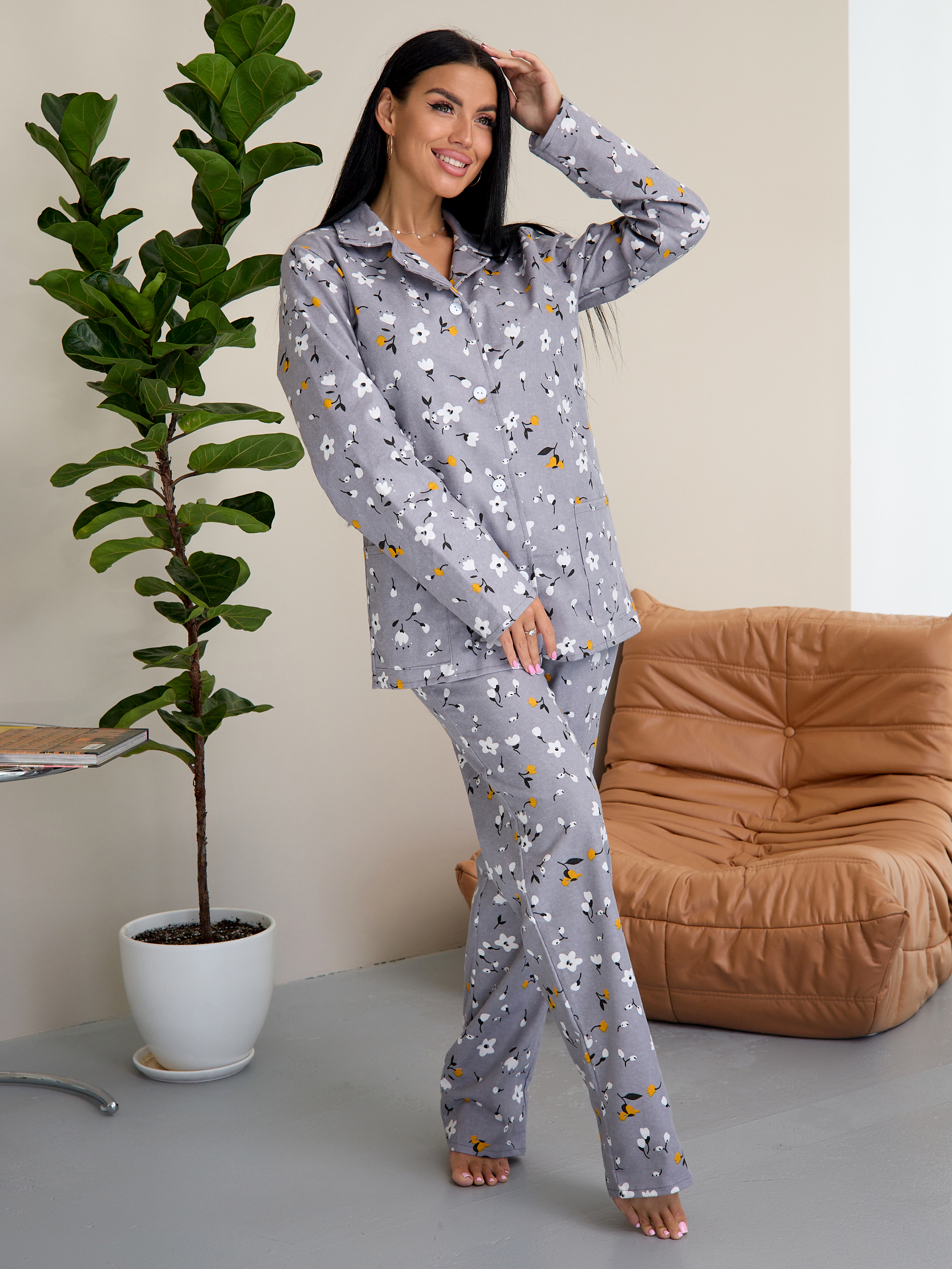 Главная Женская одежда Фланель Пижама женская м23 серая
